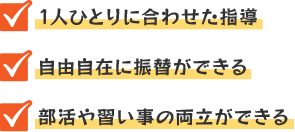部活動が忙しいなか、塾に通う小学生は多くおられます。しかし、従来型の学習塾では、授業開始の時間が固定されてしまっているので、部活動を早めに切り上げて通わなくてはなりません。授業の開始時間に間に合わず、学習時間が十分とれない子もいます。